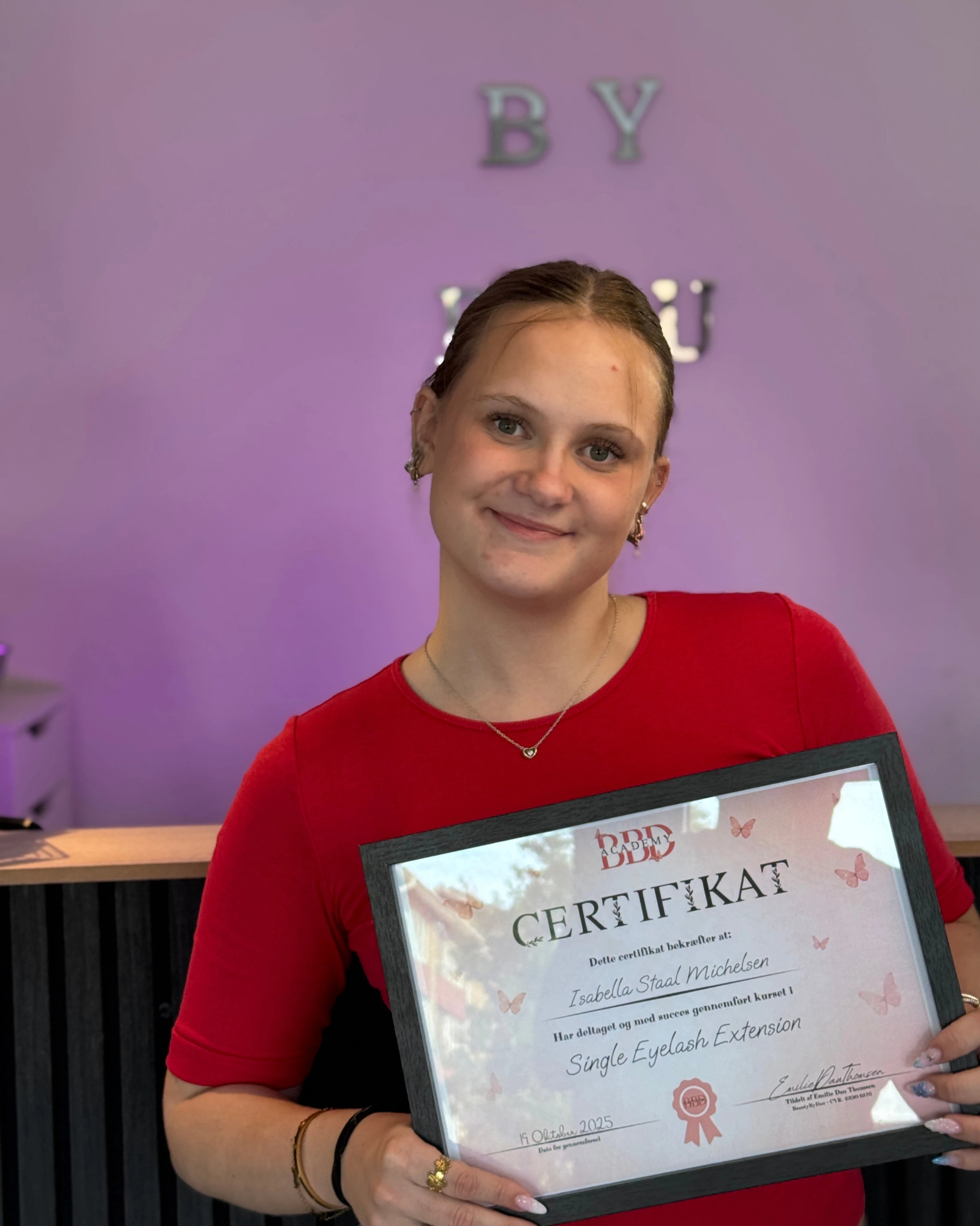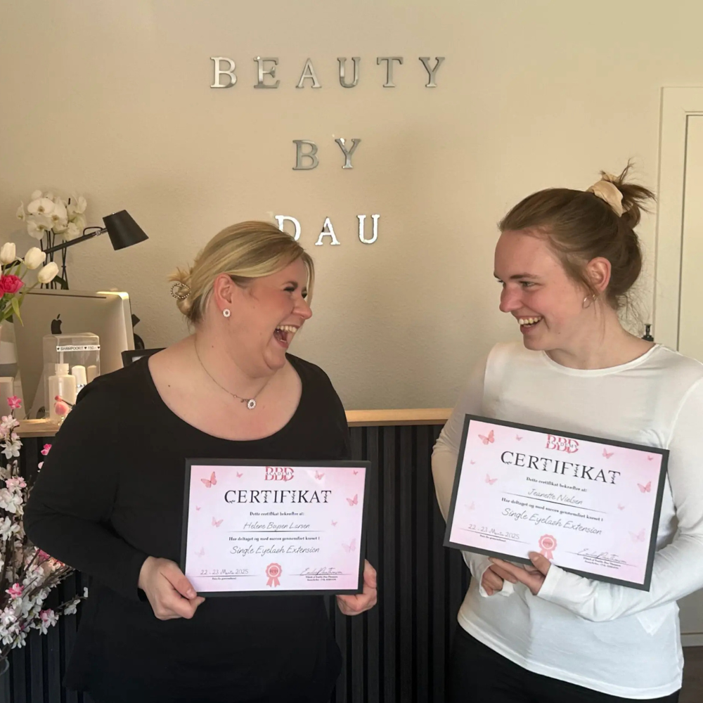 " Jeg tog single lash kursus ved Beauty by dau, nogle af de hyggeligste dage🙌🏼 Emilie er god til at tage en med i sit arbejde og lære fra sig, hvilket giver mere lyst til at lære💖 kan klart anbefale kurset❤️ "