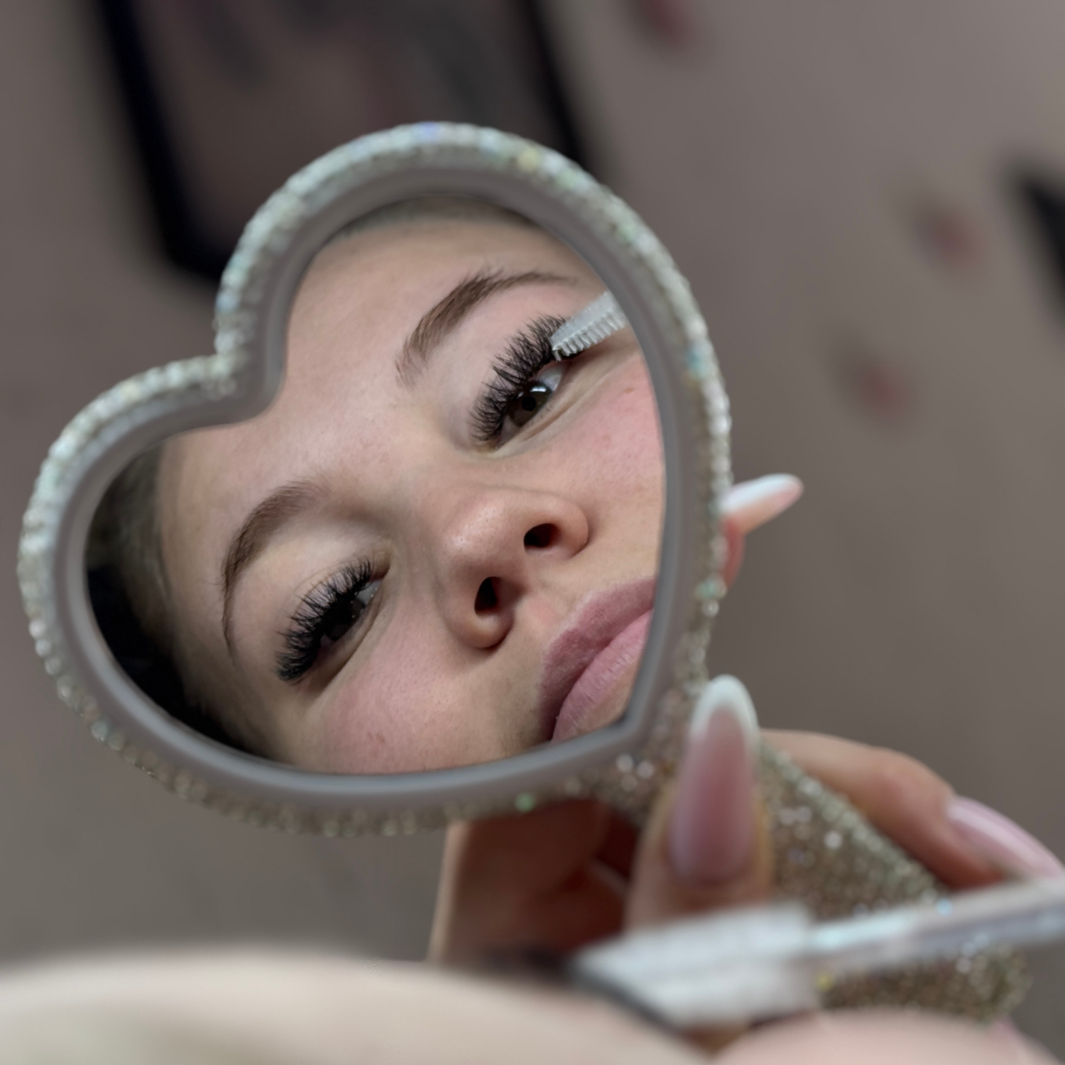 Et smukt og funktionelt håndspejl er et must-have i enhver lash salon. Dette hjerteformede håndspejl med glitter giver både et professionelt og stilfuldt look, samtidig med at det er praktisk til at vise kunden resultatet af deres behandling.