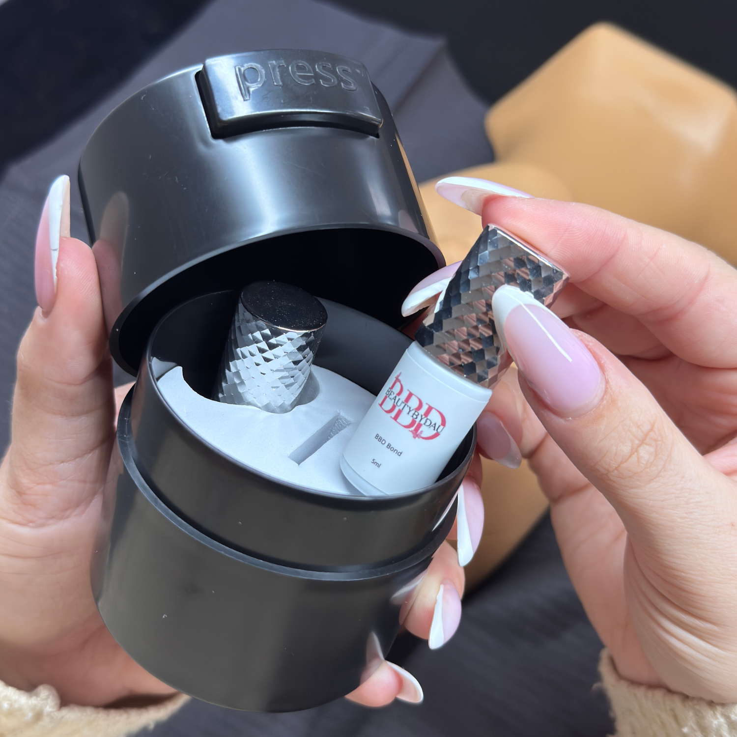 Denne praktiske limboks til lash extensions kan rumme flere limflasker og er udstyret med lufttæt lukning, der forhindrer, at produktet tørrer ud. Den er kompakt, stilfuld og let at have stående på arbejdsbordet eller med i tasken.