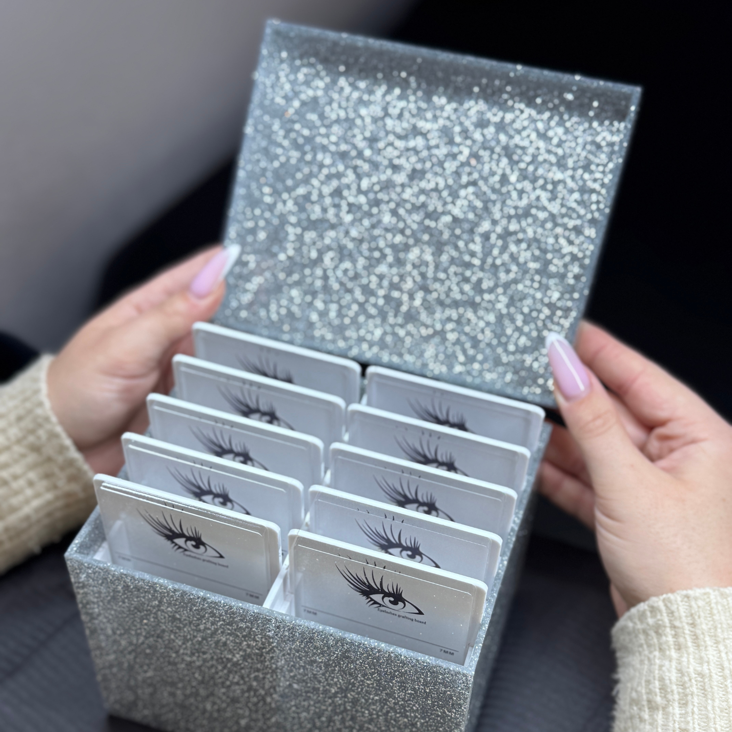 Hold dine lash strips rene, flade og lette at finde med en vippe opbevaringsboks. Boksen beskytter mod støv og fugt og giver dig et hurtigt overblik over længder og krumninger, så dit arbejdsflow bliver hurtigere og mere præcist. Også kendt som vippe box eller lash box.